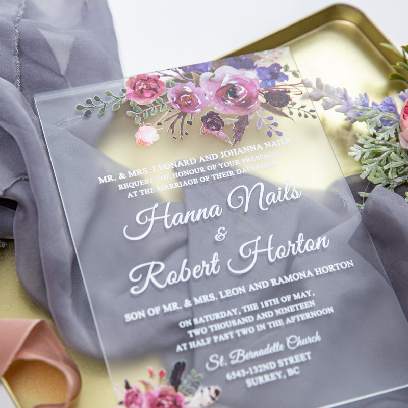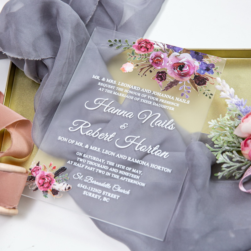 Frosted Acrylic Wedding Invitation Floral UV Printing