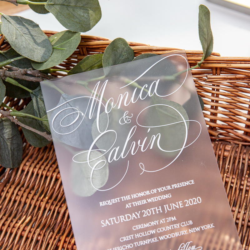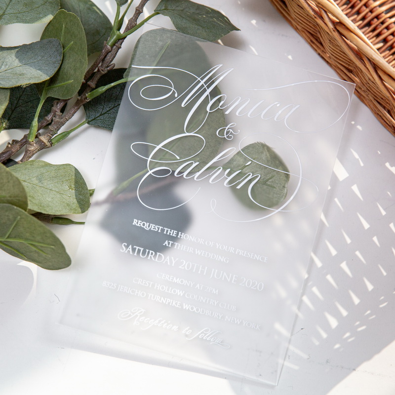 Frosted Acrylic Wedding Invitation With White UV Printing