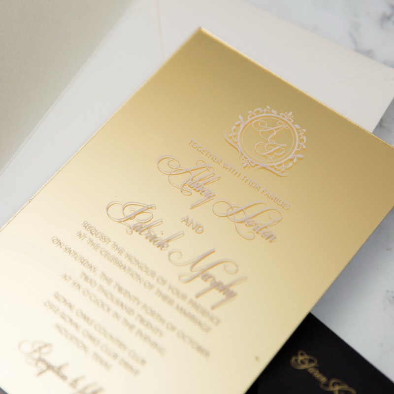 Gold Mirror Acrylic Wedding Invitation With Screen Printing