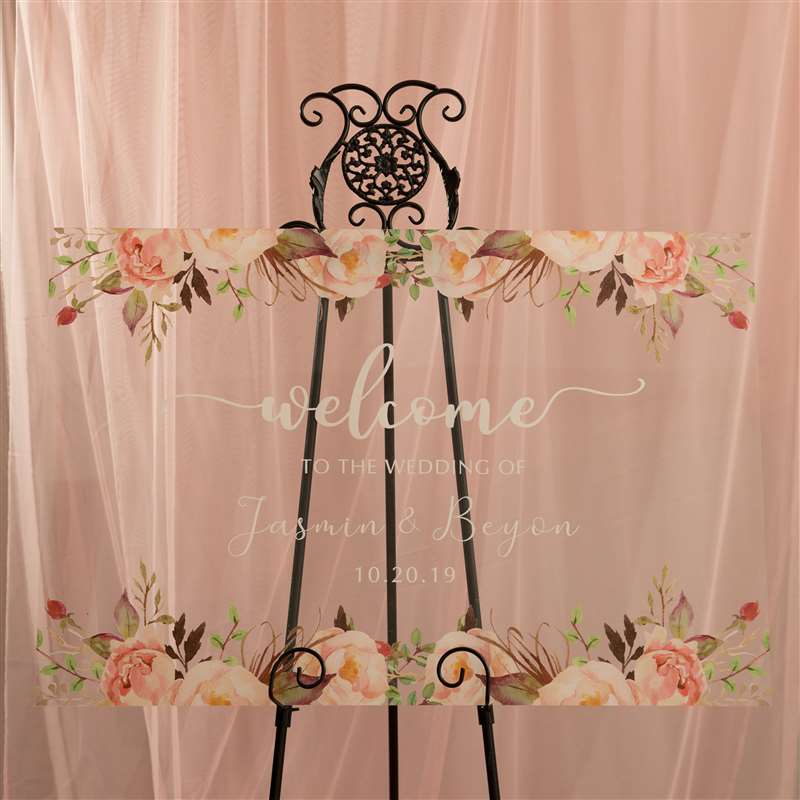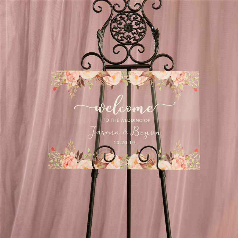 Colorful and Chic Floral Acrylic Wedding Welcome Sign
