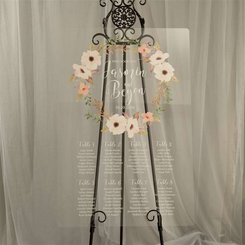 Floral Garland Colorful Acrylic Wedding Seating Chart Sign