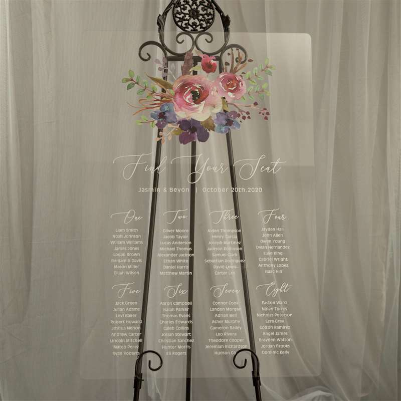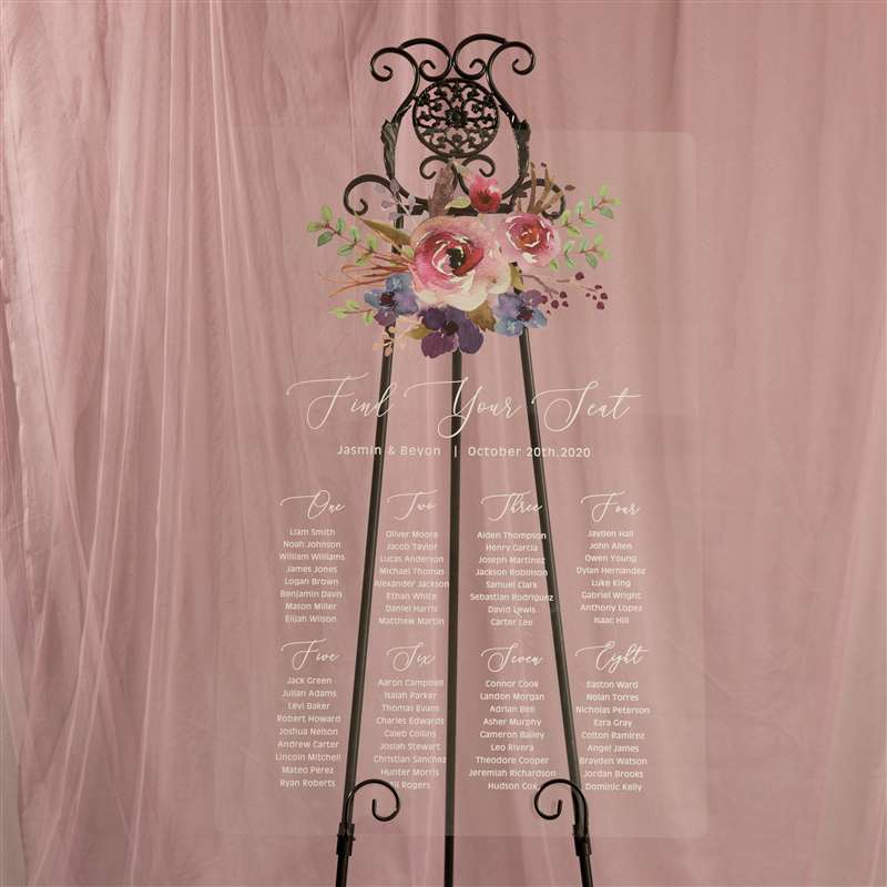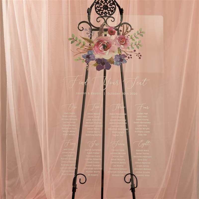 Natural Pink and Purple Floral Acrylic Wedding Seating Chart Sign