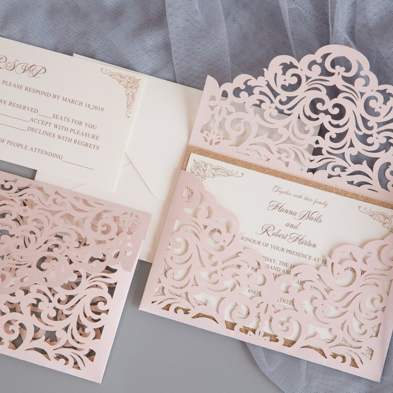 Laser-cut wedding invitations are one of the most popular types out there. Many of our laser-cut wedding invitations feature beautiful pockets as well. Start customizing your wedding invitations below!