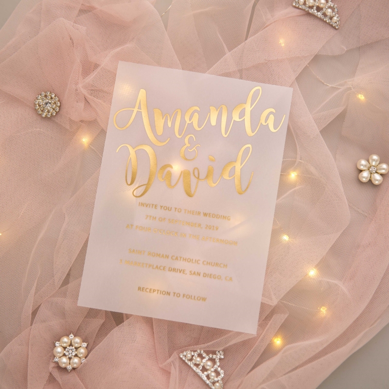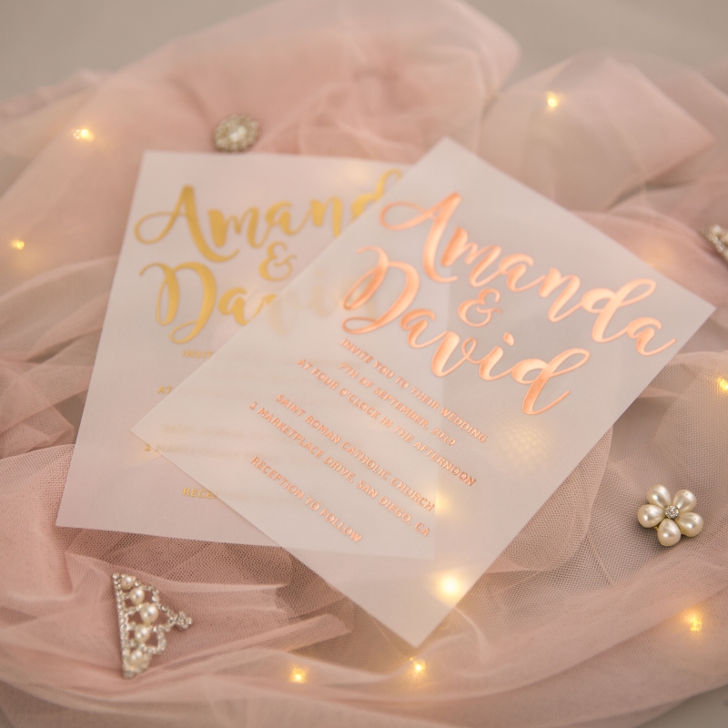 Invitation Size:127x178mm/5x7inch or 150x150mm/5.9x5.9inch (w x h)(No.358 Vellum Paper)