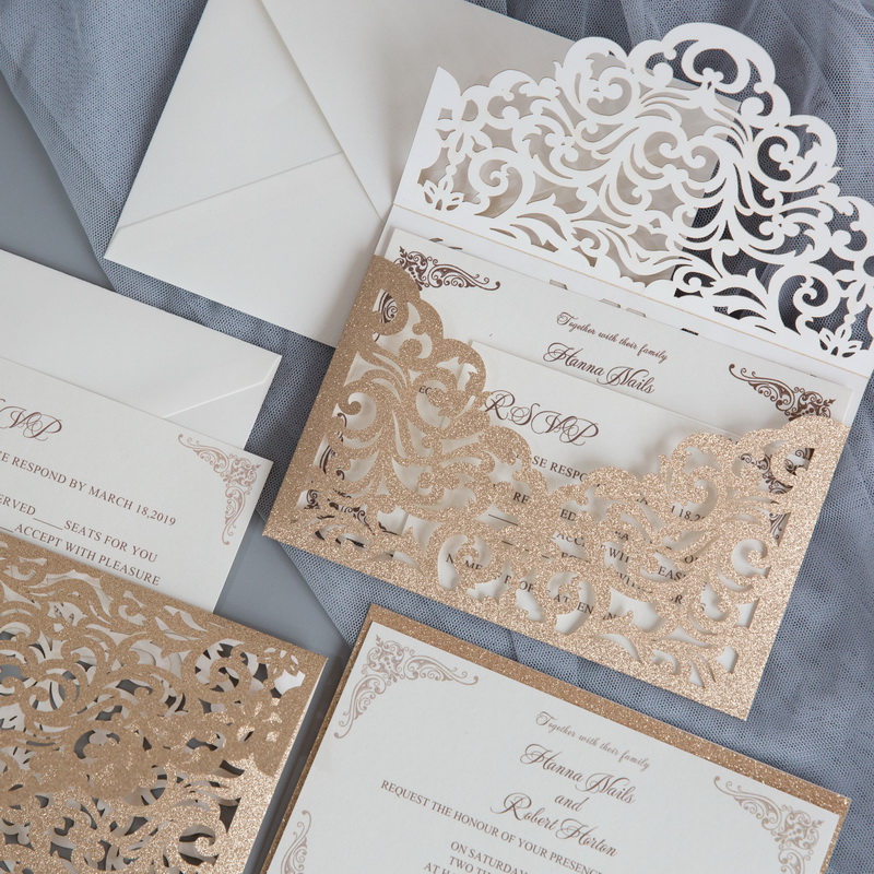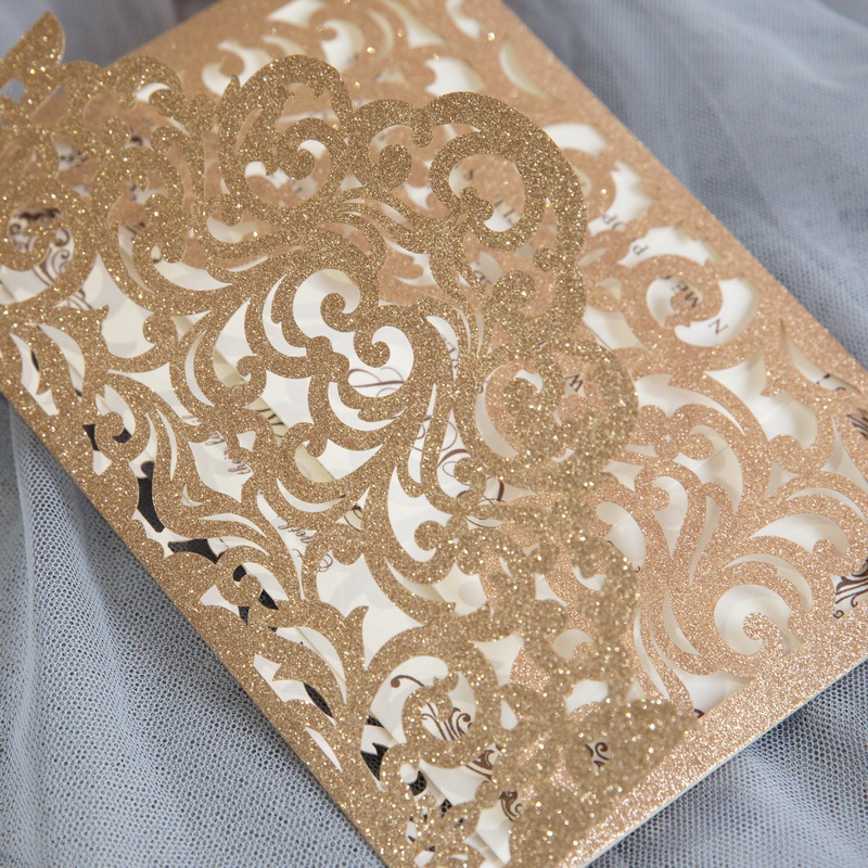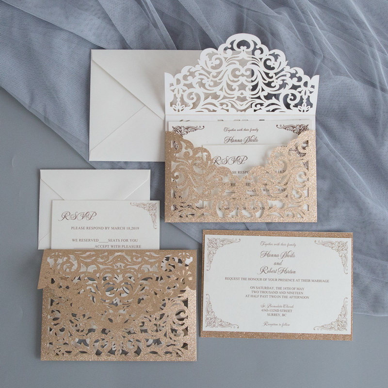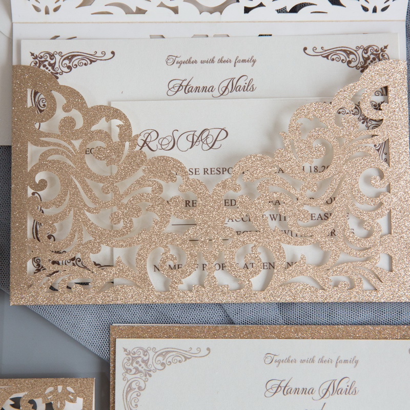 Elegant Glitter Paper Laser Cut Envelope Wedding Invitation