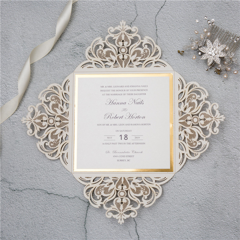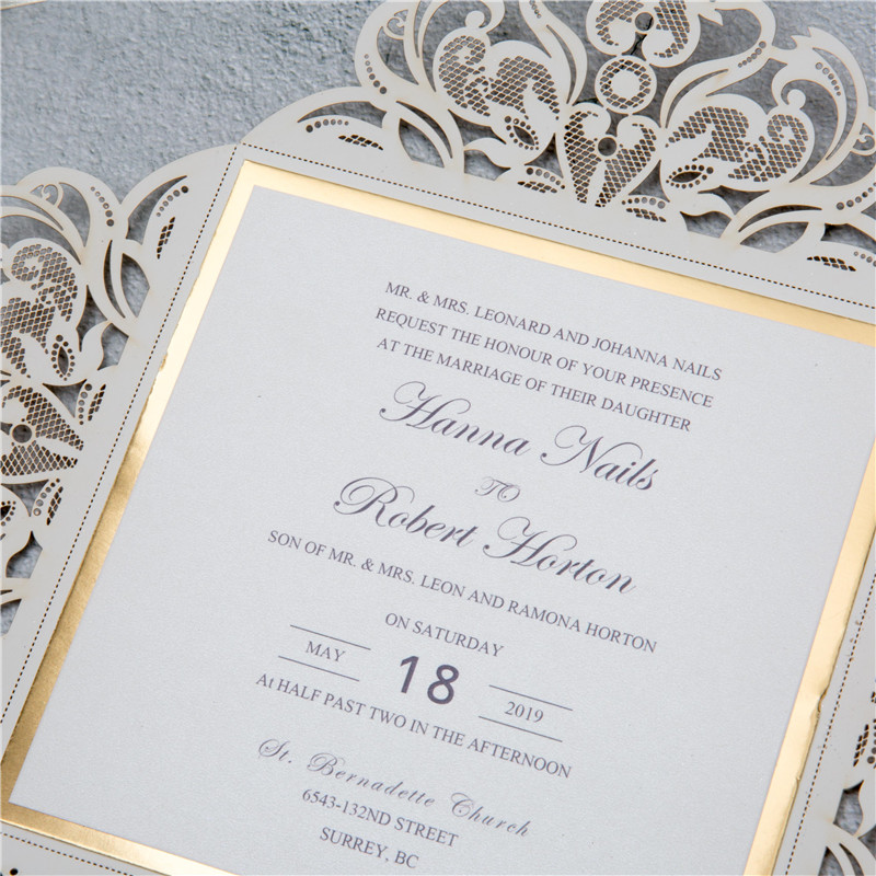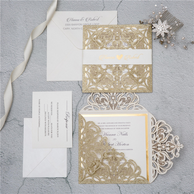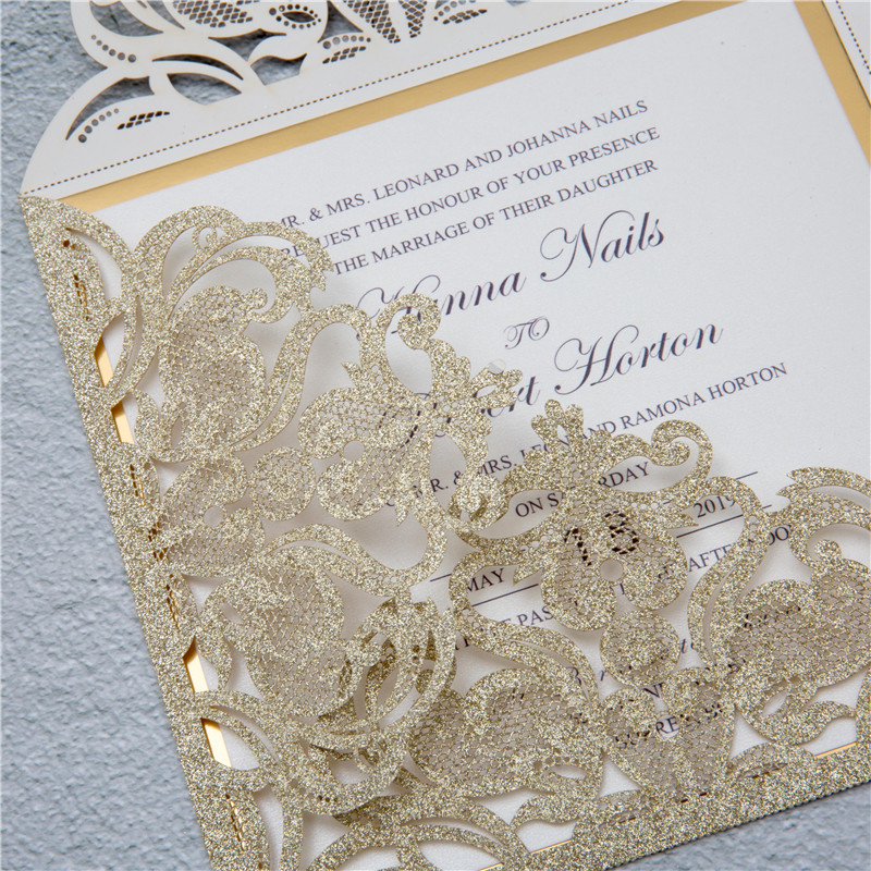 Elegant Glitter Paper Laser Cut Wedding Invites