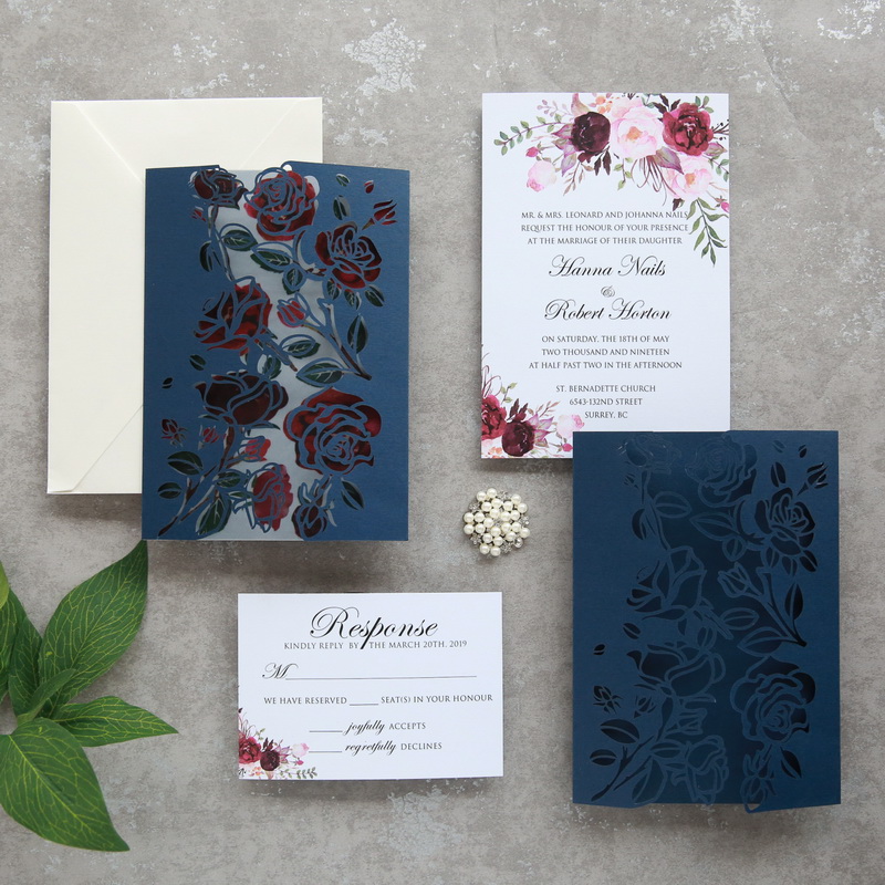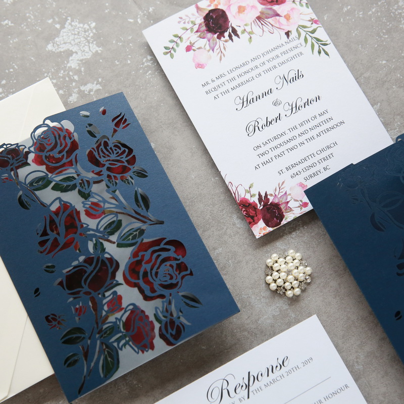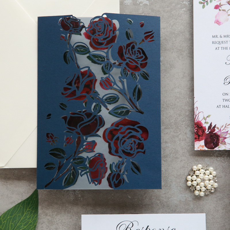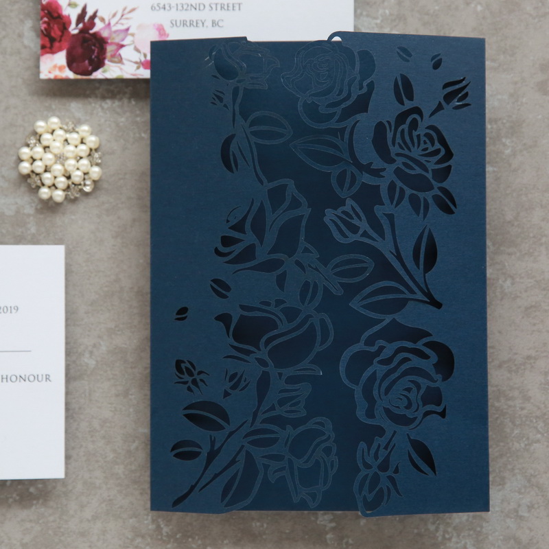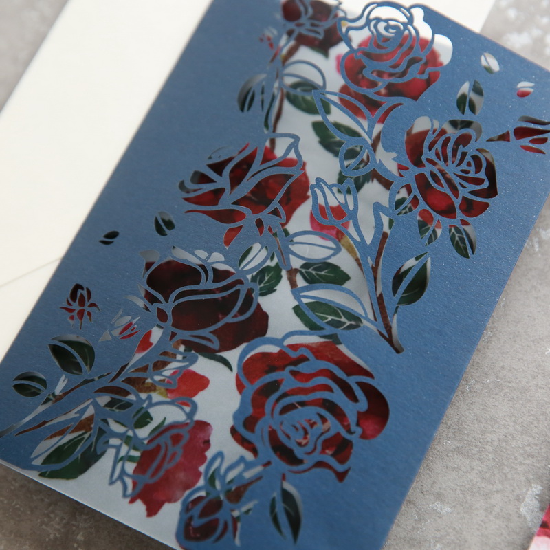 Special Asymmetric Rose Design Laser Cut Wedding Invitation