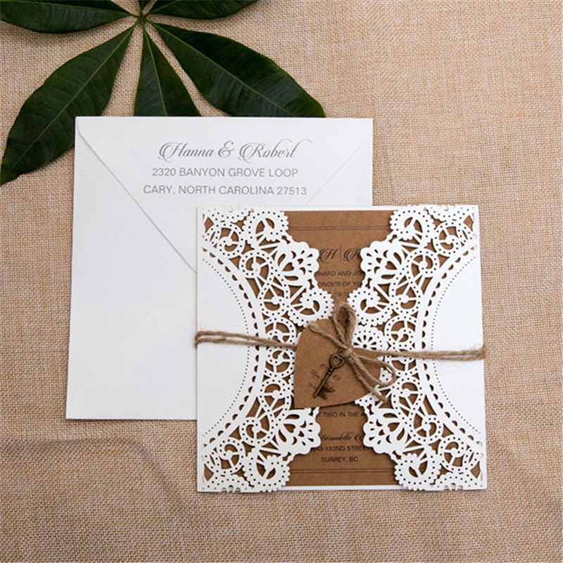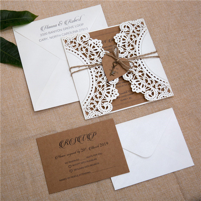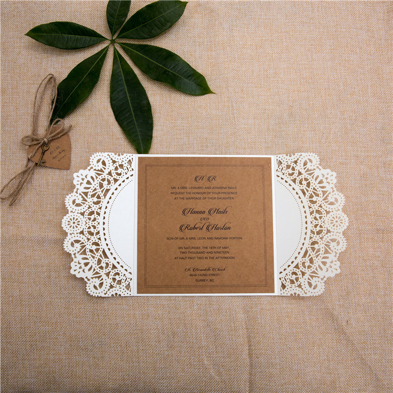 Affordable Rustic Laser Cut Wedding Invitation Cards