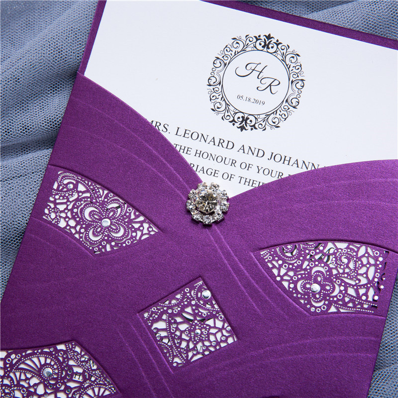 Laser-cut wedding invitations are one of the most popular types out there. Many of our laser-cut wedding invitations feature beautiful pockets as well. Start customizing your wedding invitations below!