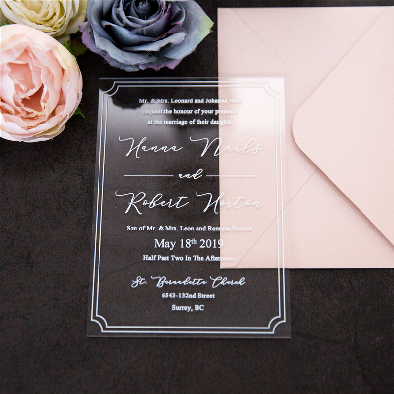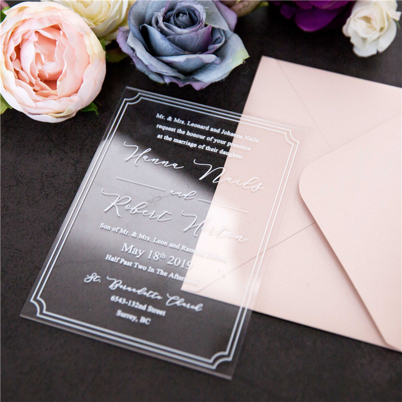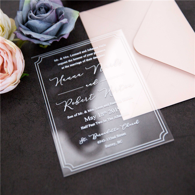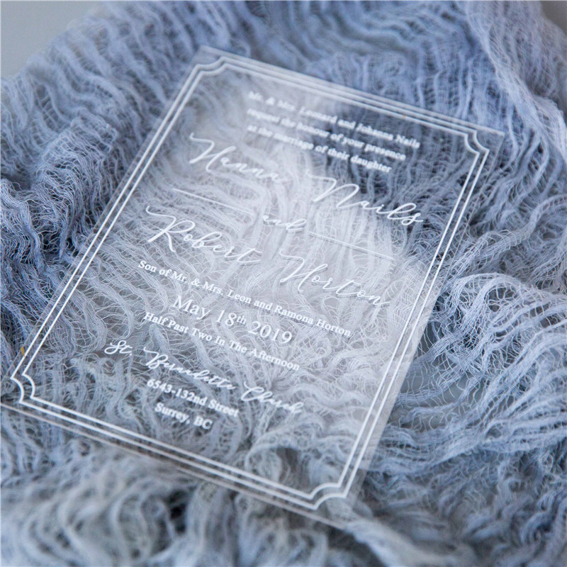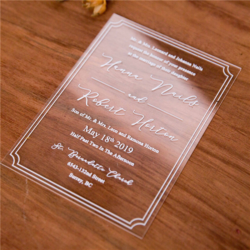 Note: There is a protective film on the acrylic invitations, you can easily peel it off by dropping some water on the film.