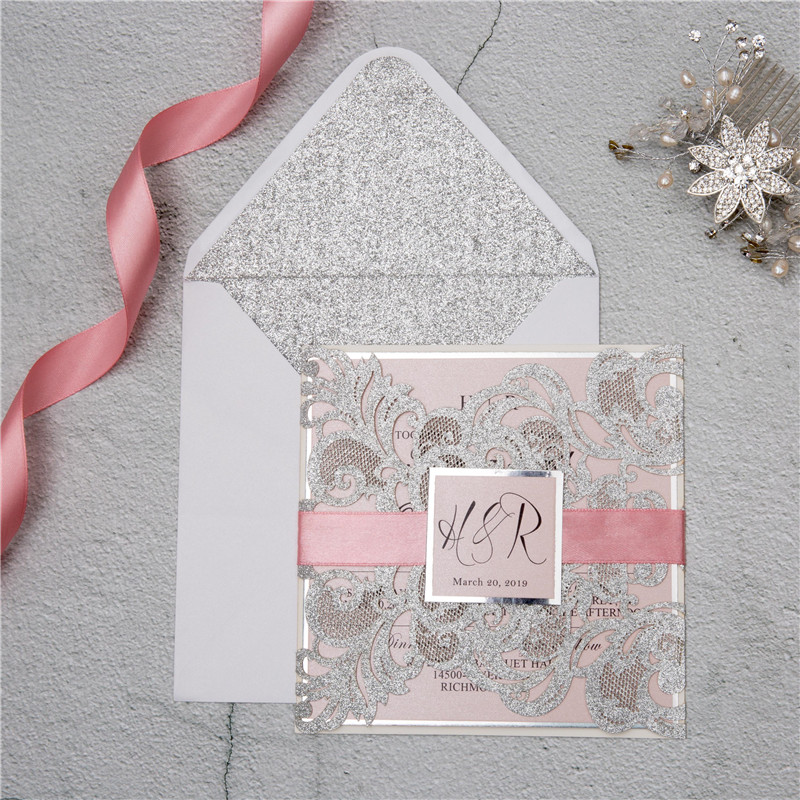 Gorgeous Lace Glitter Paper Laser Cut Wedding Invitations