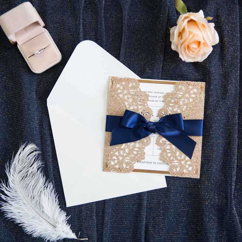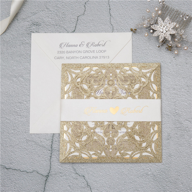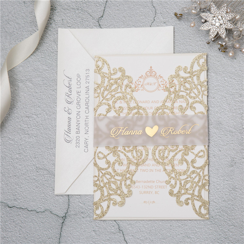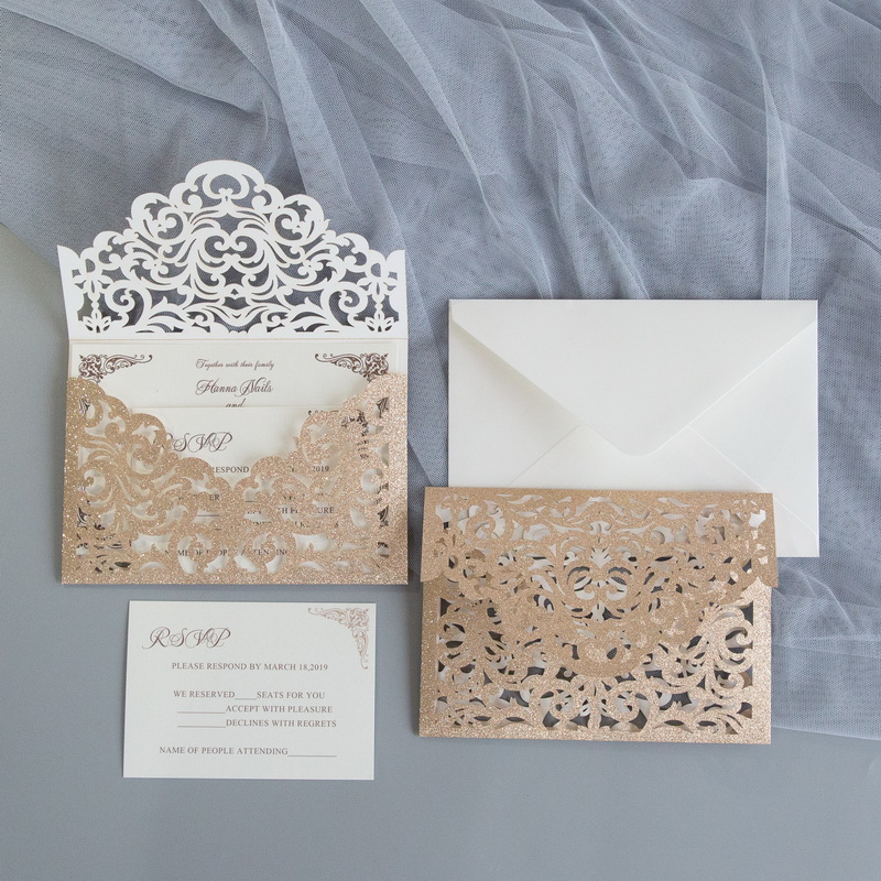 Elegant Glitter Paper Laser Cut Wedding Invites