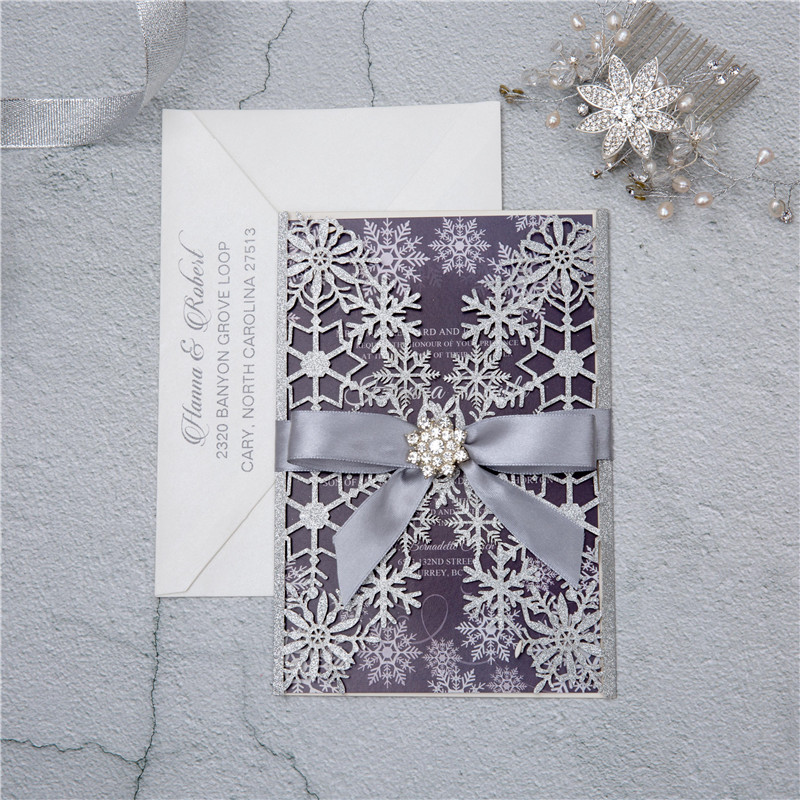 Luxury Winter Snowflake Glitter Paper Laser Cut Wedding Invites