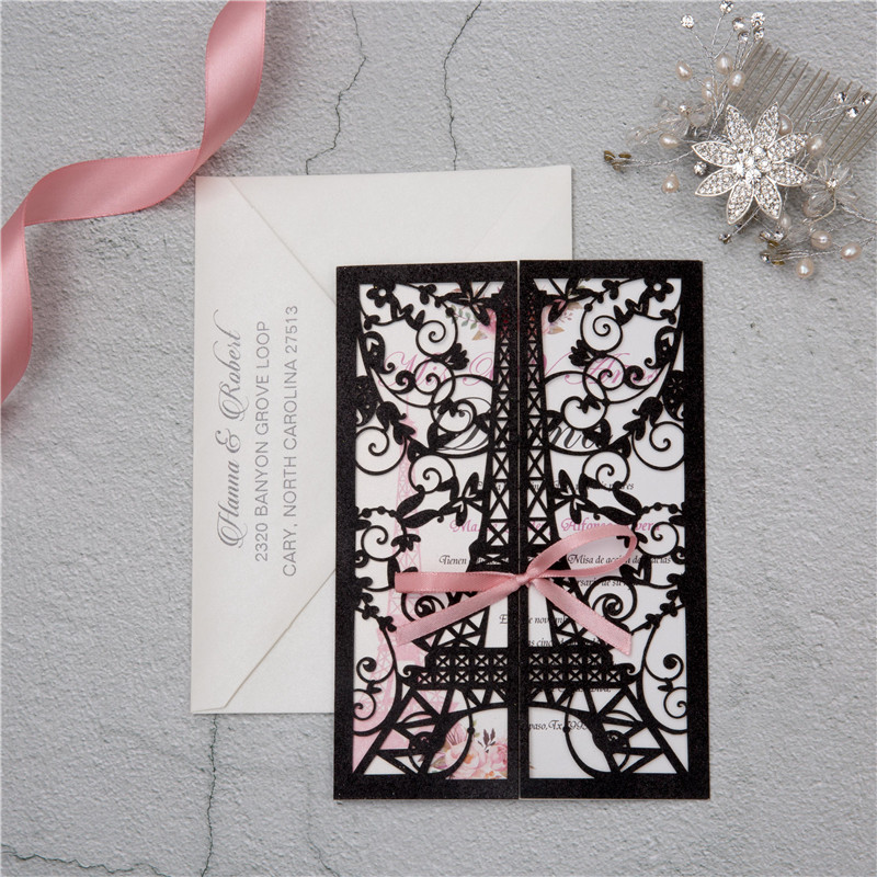 Luxurious Eiffel Tower Glitter Paper Laser Cut Wedding Invitations